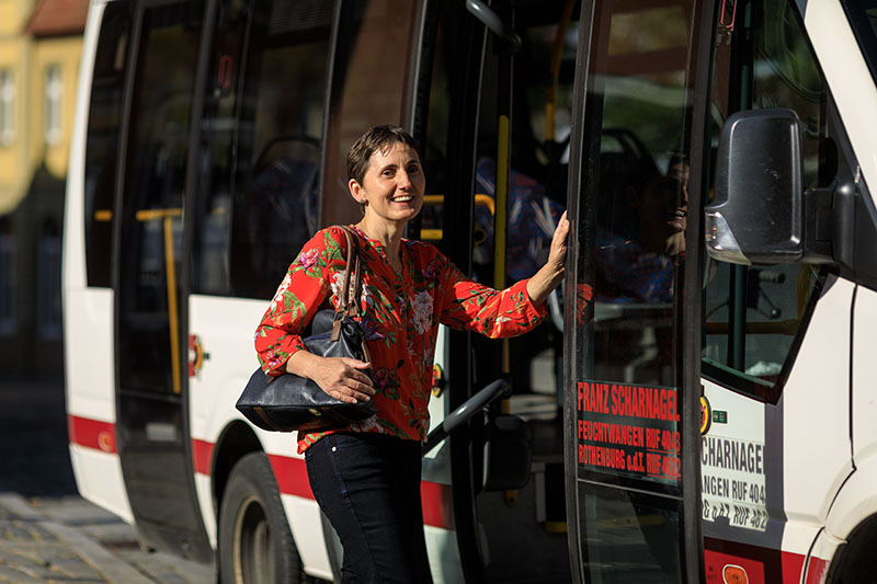 Zu gleichwertigen und somit attraktiven Lebensverhältnissen in ländlichen Regionen gehört unabdingbar auch der öffentliche Nahverkehr. So ist eine Stadt wie Feuchtwangen zwar an ein überregionales Busnetz angeschlossen und in der Innenstadt fährt ein Stadtbus, doch besteht für Bürgerinnen und Bürger ohne eigenes Auto kaum die Möglichkeit individuell und unabhängig mobil zu sein, gerade in den vielen Ortsteilen.